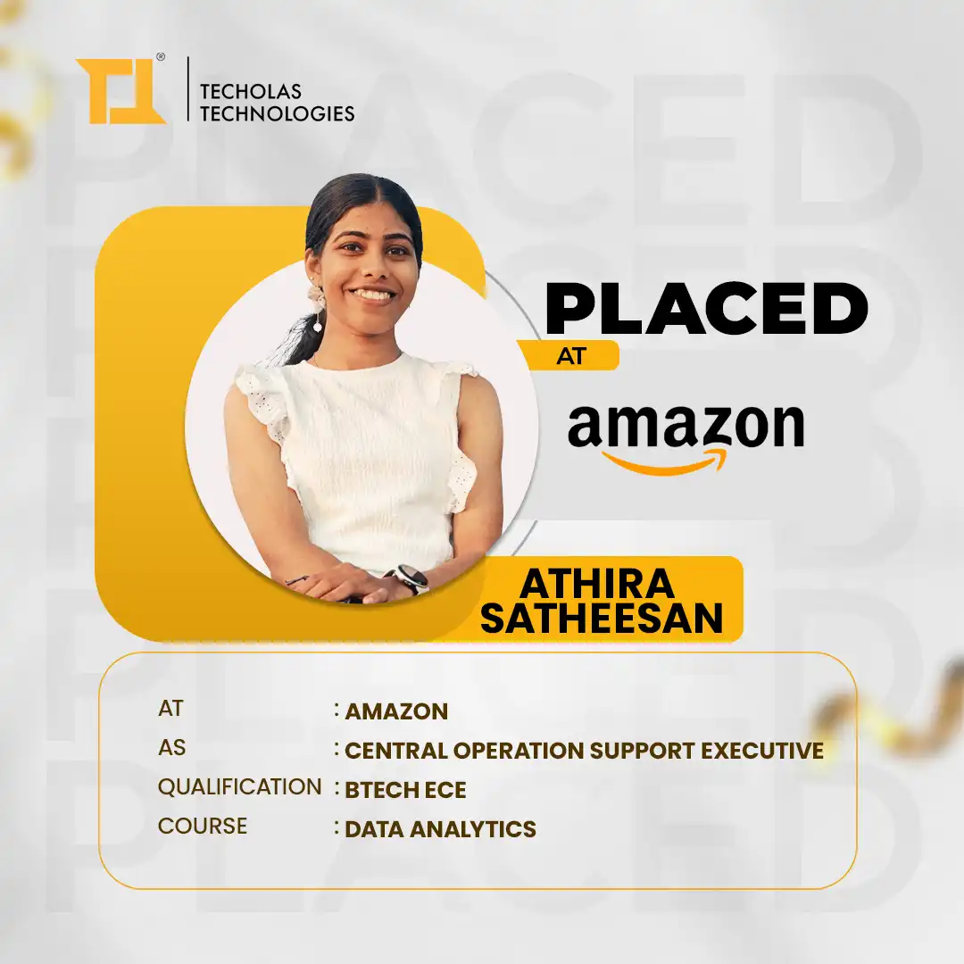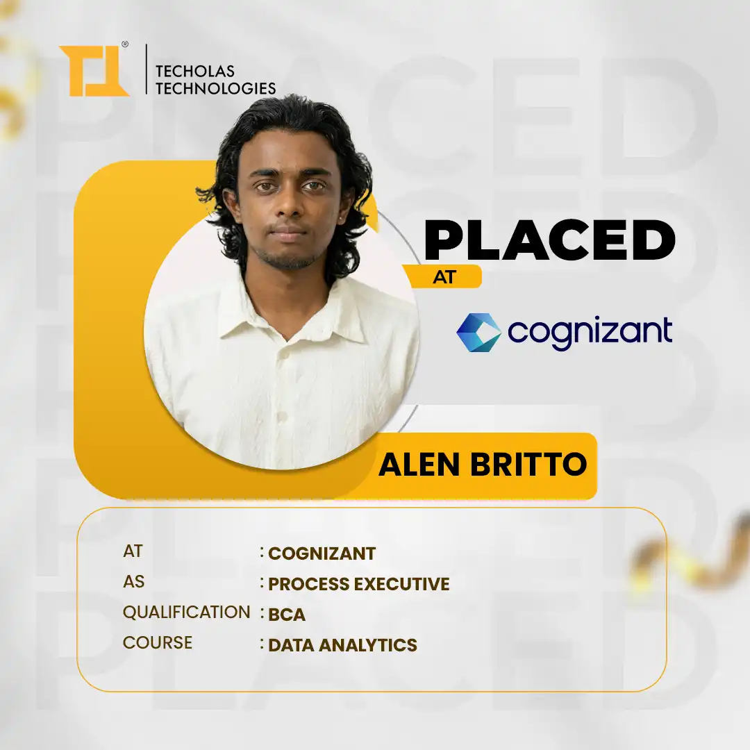 I recently got placed as a business analyst through Techolas Technologies, Calicut, and it was a great experience. The teachers were very supportive, and their guidance really helped me during my placement. I’m very thankful for their efforts
