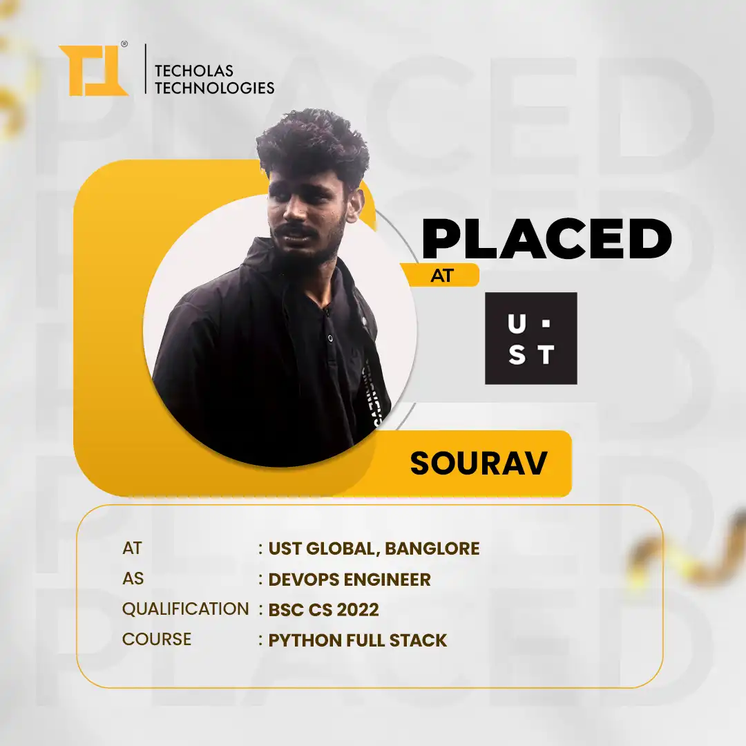 I am grateful to TECHOLAS TECHNOLOGIES PVT LTD for providing excellent guidance and practical learning, which helped me secure my placement. The supportive faculty and hands-on projects made a real difference in my career journey. Highly recommended!