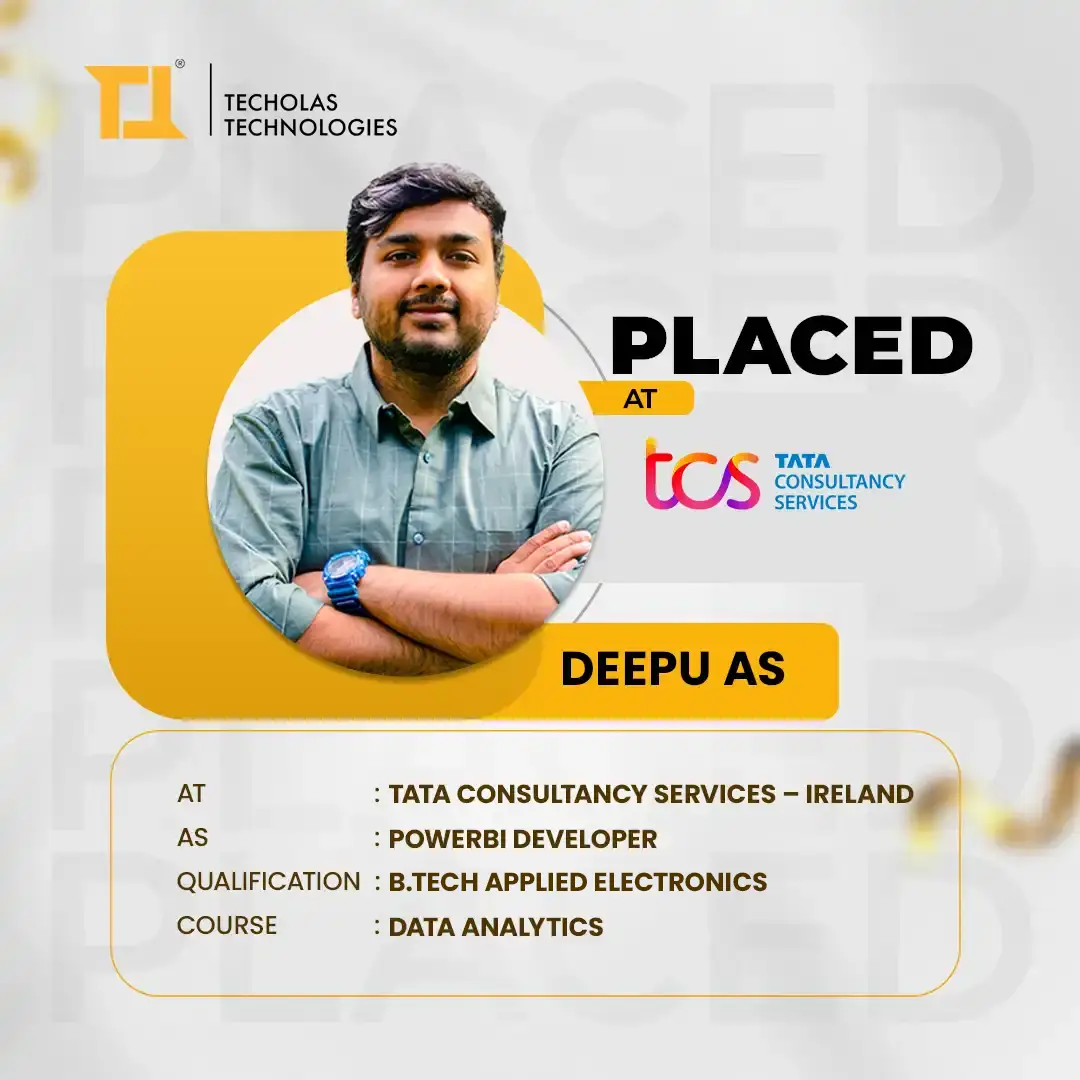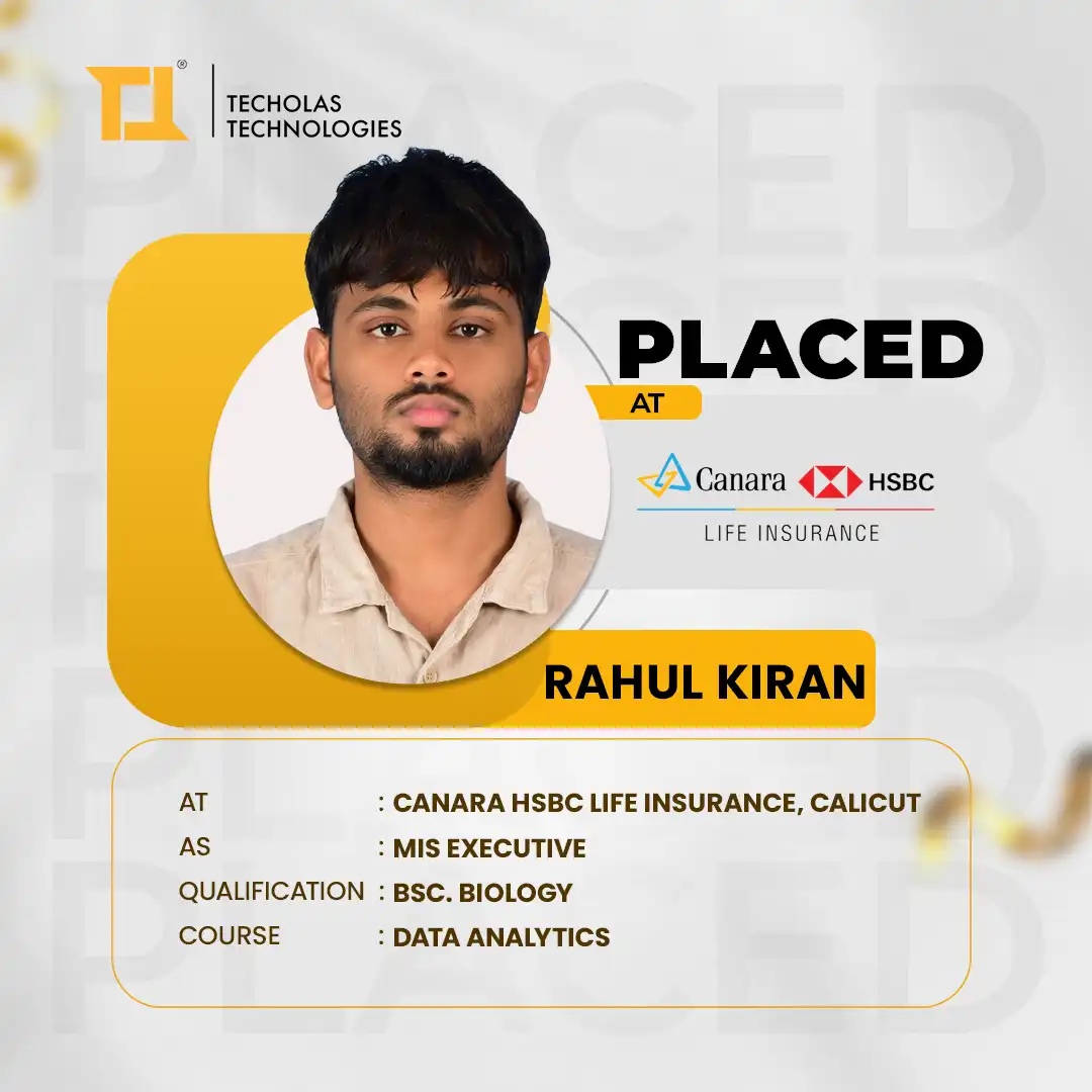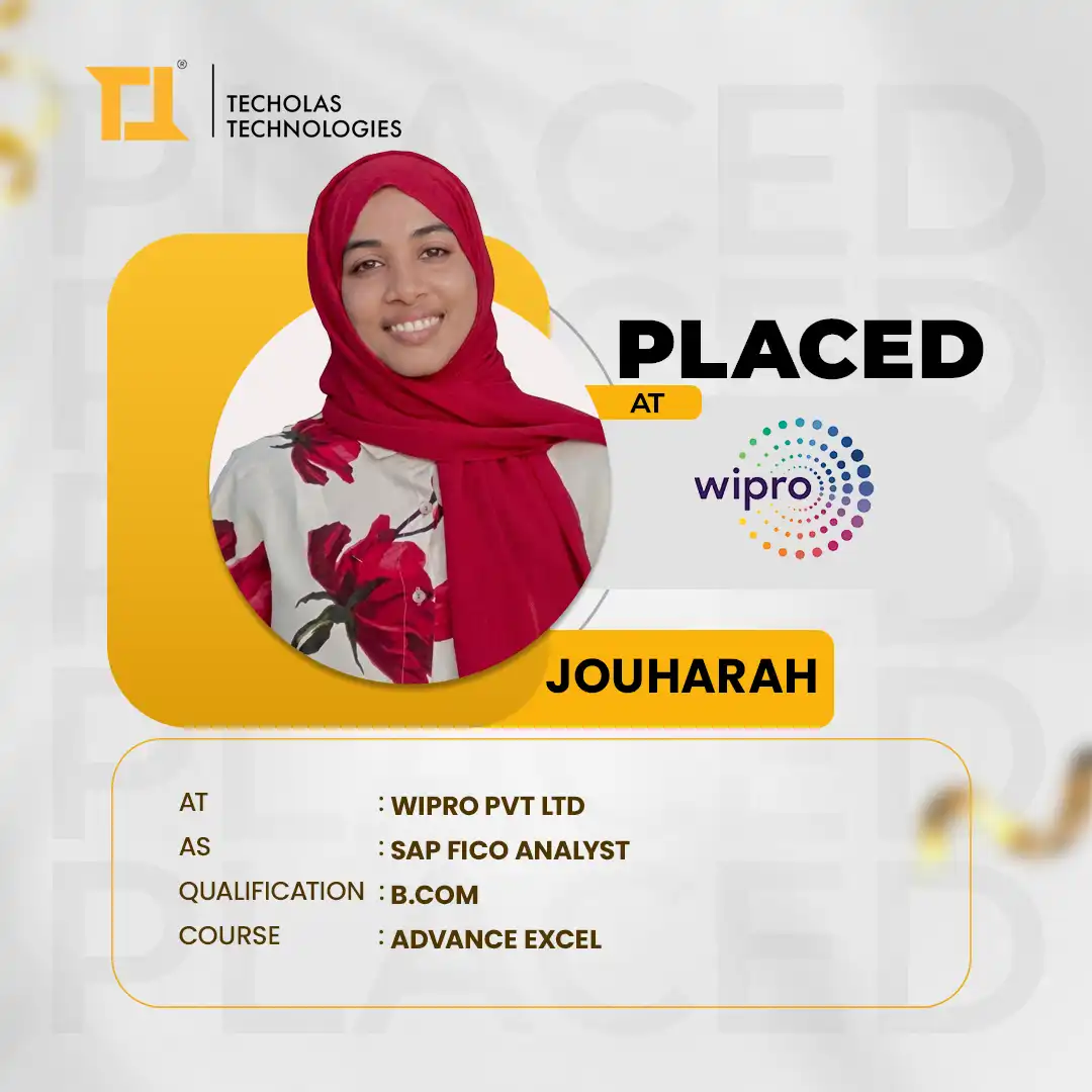 I recently got placed as a business analyst through Techolas Technologies, Calicut, and it was a great experience. The teachers were very supportive, and their guidance really helped me during my placement. I’m very thankful for their efforts