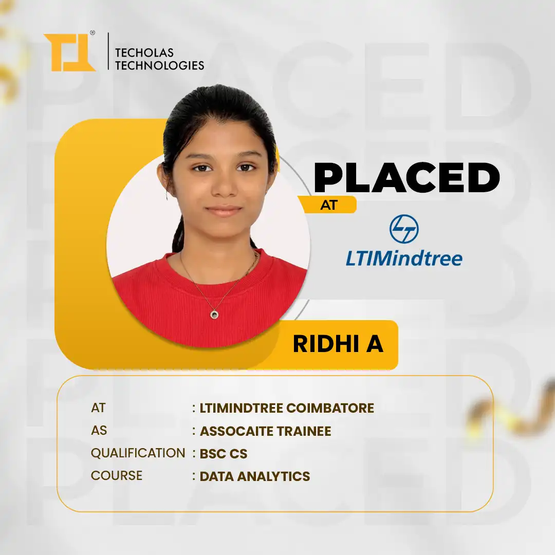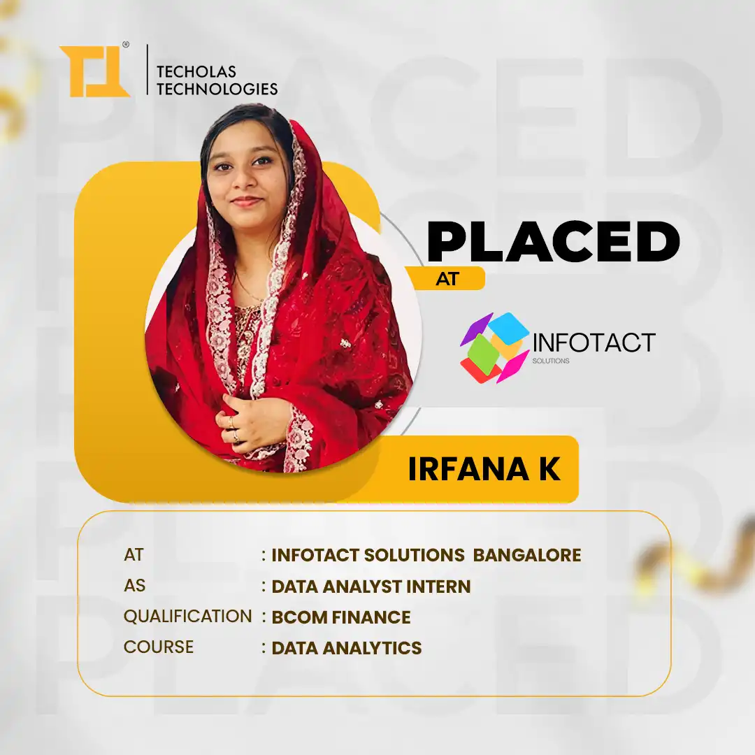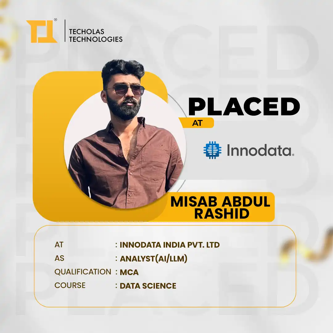 I recently got placed as a business analyst through Techolas Technologies, Calicut, and it was a great experience. The teachers were very supportive, and their guidance really helped me during my placement. I’m very thankful for their efforts
